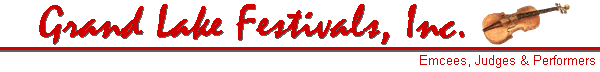 Co-chairs of this Festival, Brad and Shirley Adams, and their pickin’ friends continue to entertain audiences throughout the Grand Lake area with their talents and humor. Left to right: Back to Top |