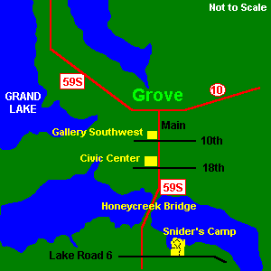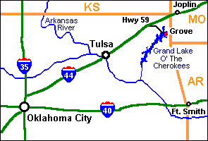 click to enlarge From Interstate 44, approximately 80 miles NE of Tulsa, take Exit 302 and follow Highway 59S into Grove.